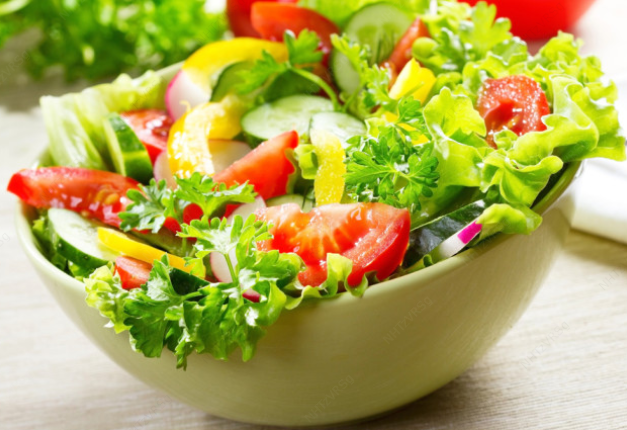 nuggets de pollo acompañadp con vegetales y salsa mostaza miel