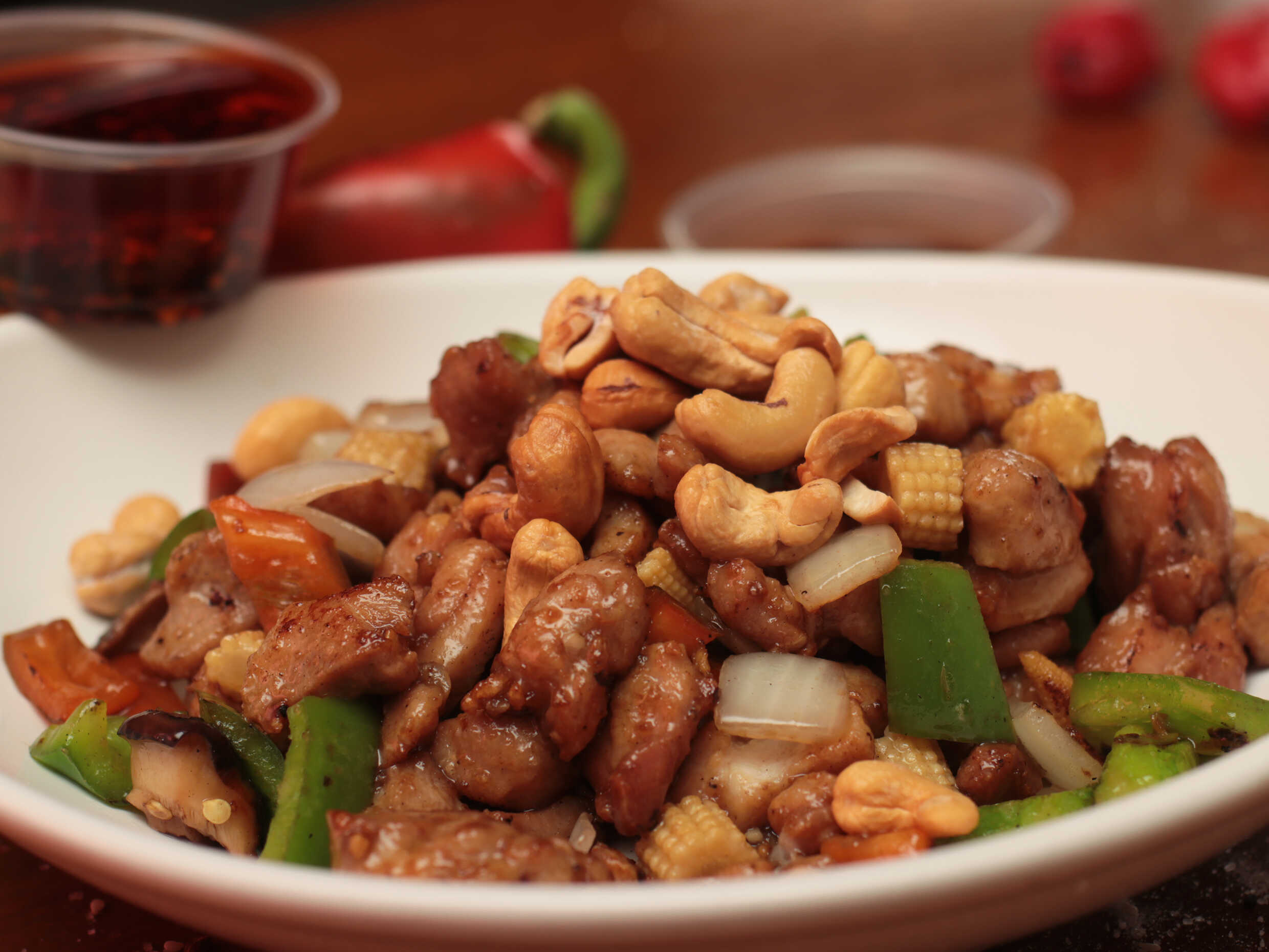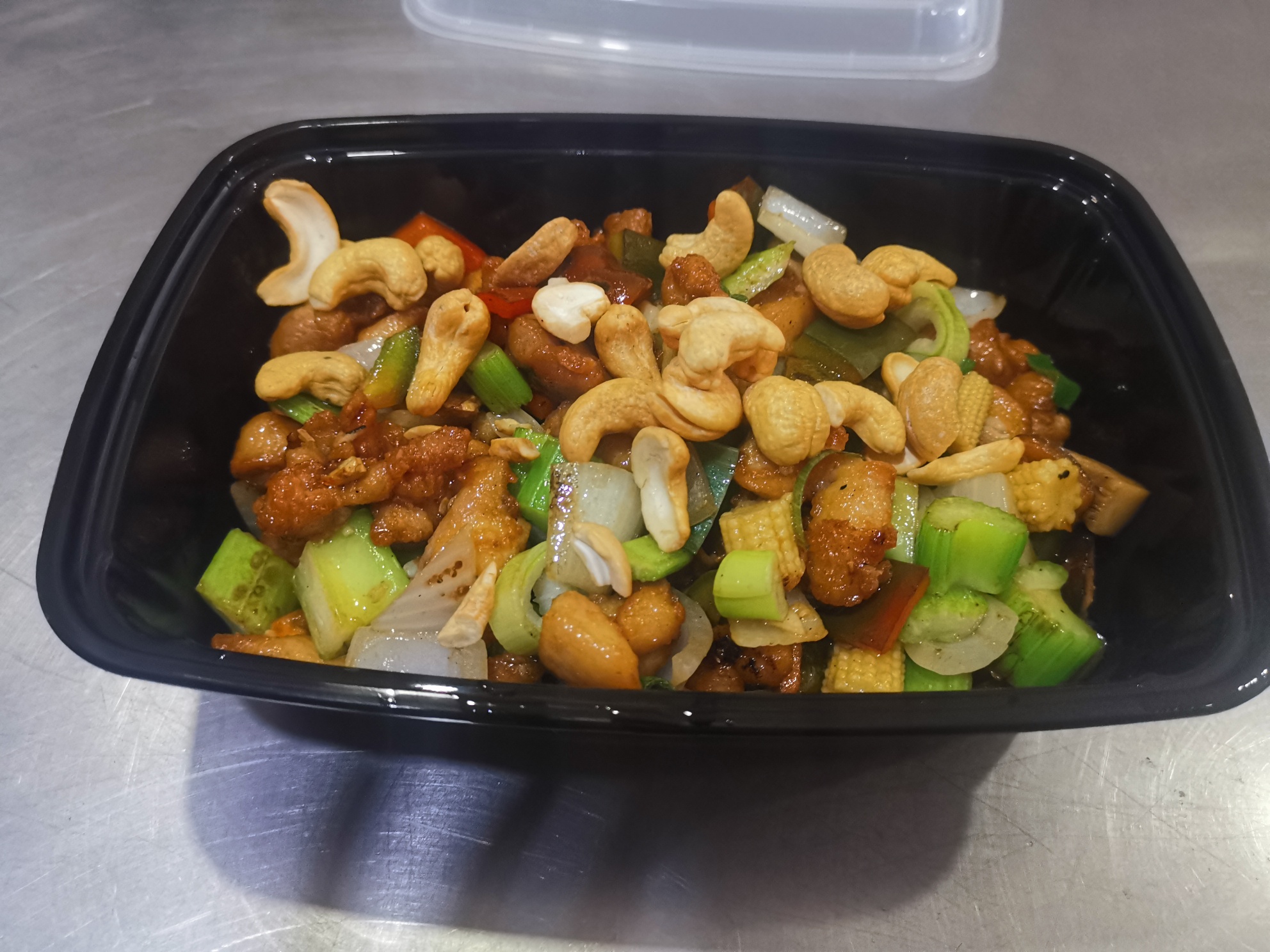 pollo ,vegetales mixtos ,salteado en salsa de ostion con semilla de marañon