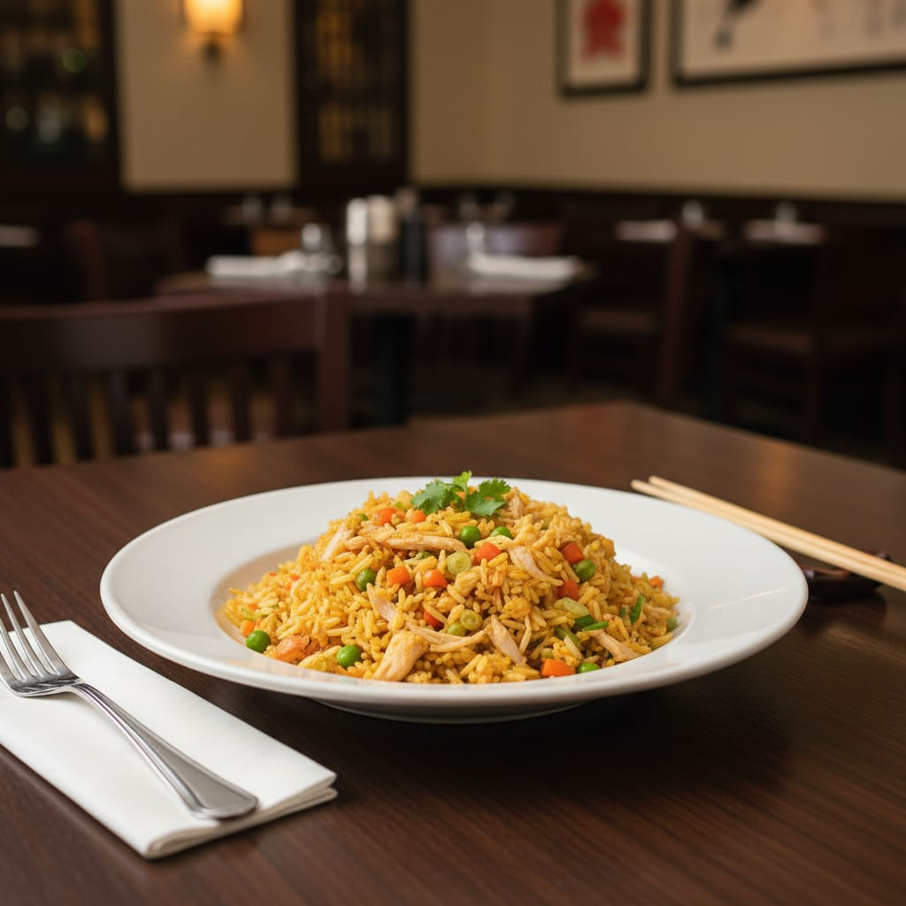 Arroz frito con pollo.