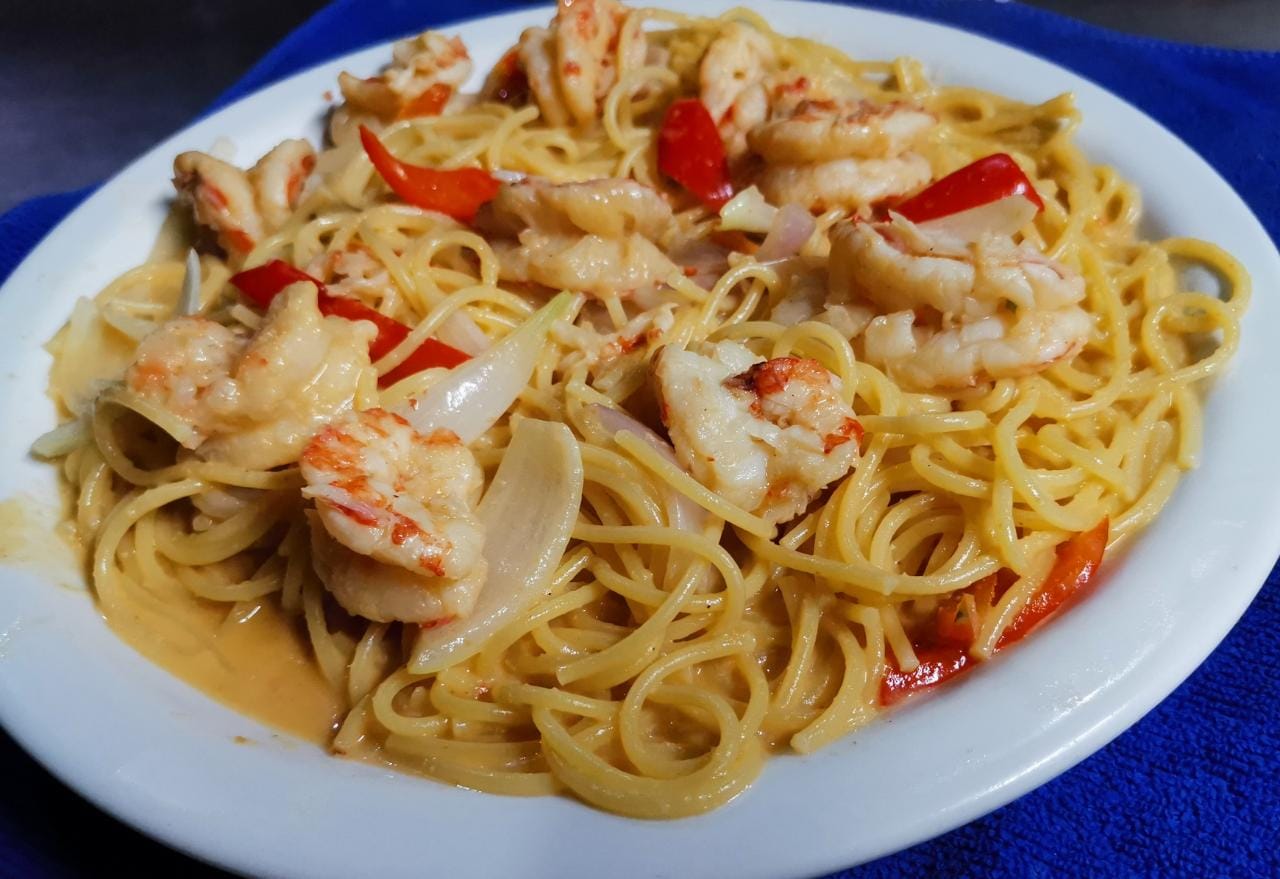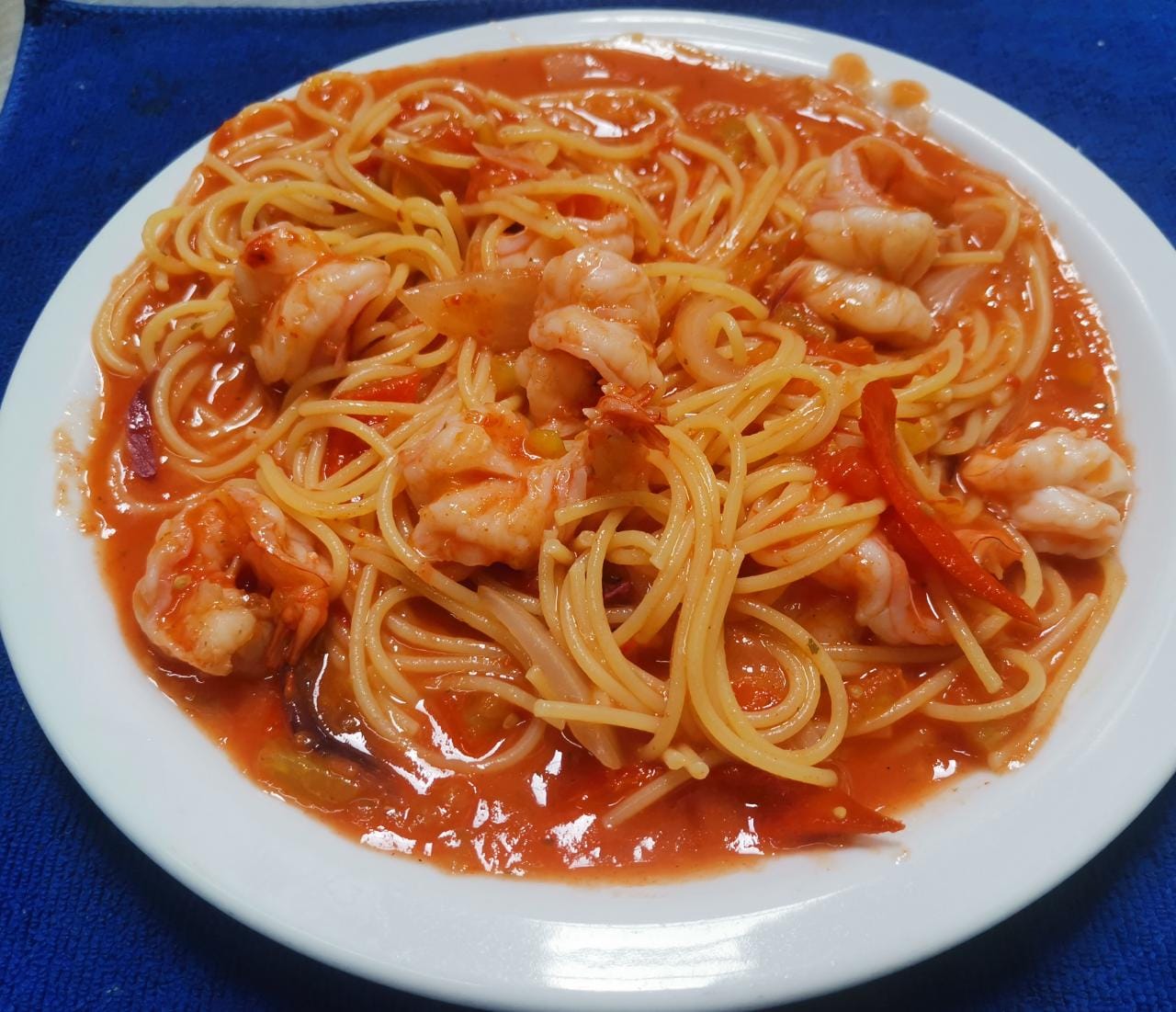 Spaghetti con Camarones salsa tomate
