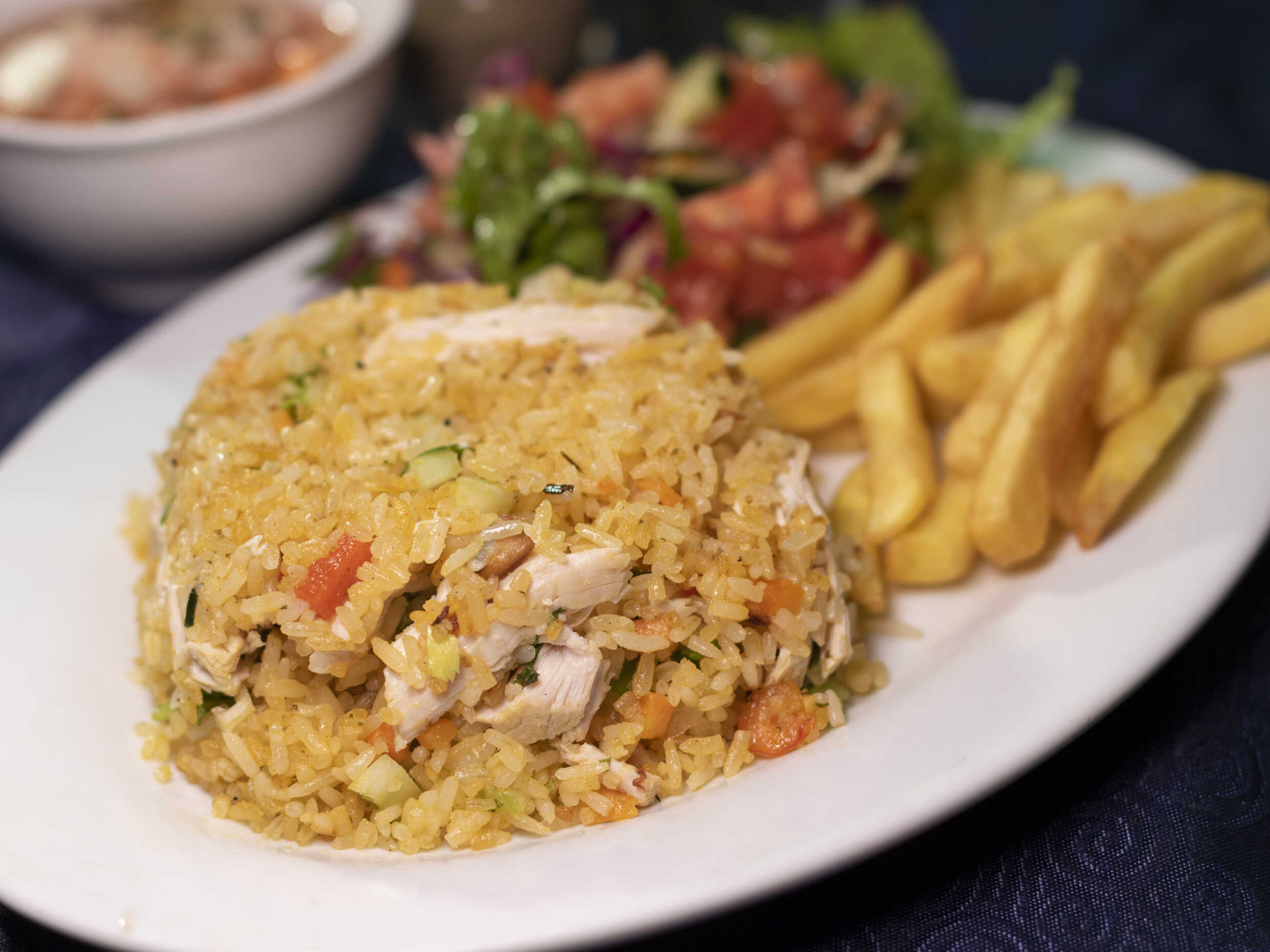Los arroces van acompañados con papas fritas y ensalada.