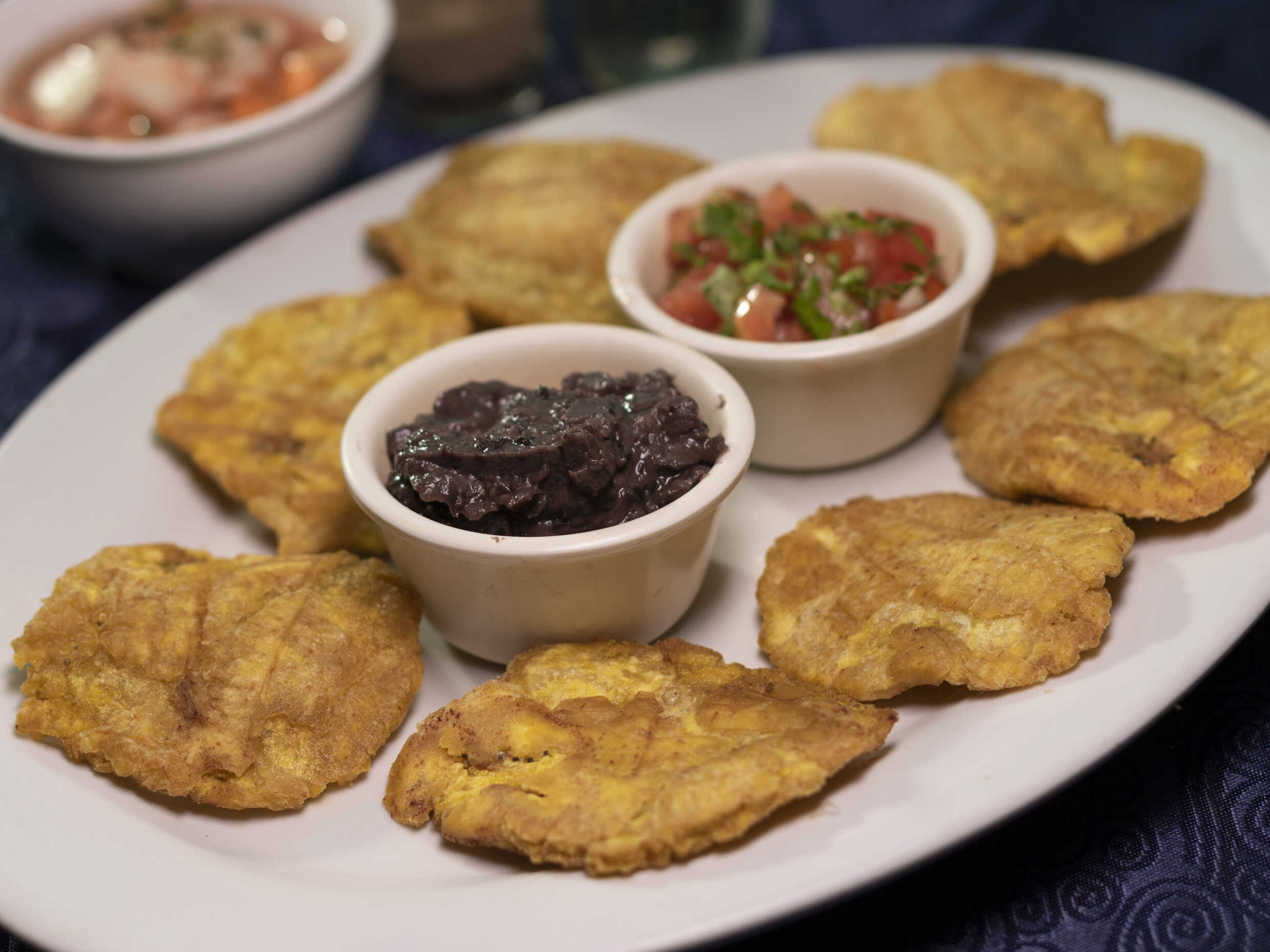 Patacones con Frijoles y Pico de Gallo