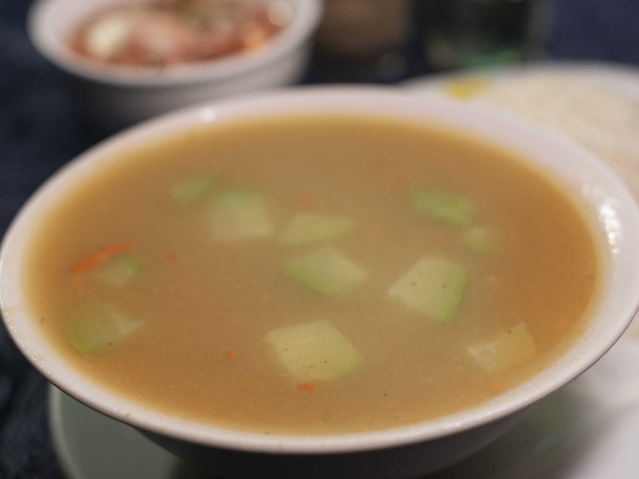 Entrada, sopas acompañadas de orden de arroz.