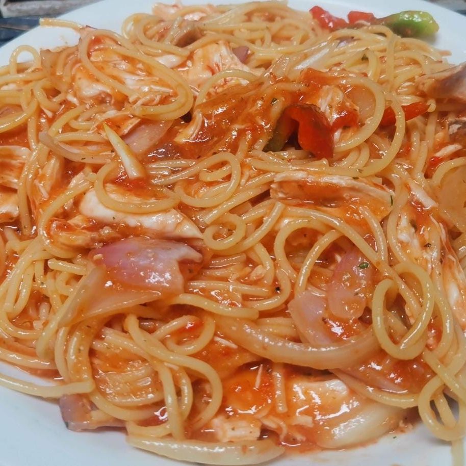 Spaghetti con Pollo en Salsa de Tomate