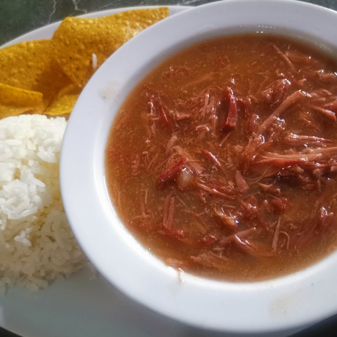 Carne mechada con salsa picante