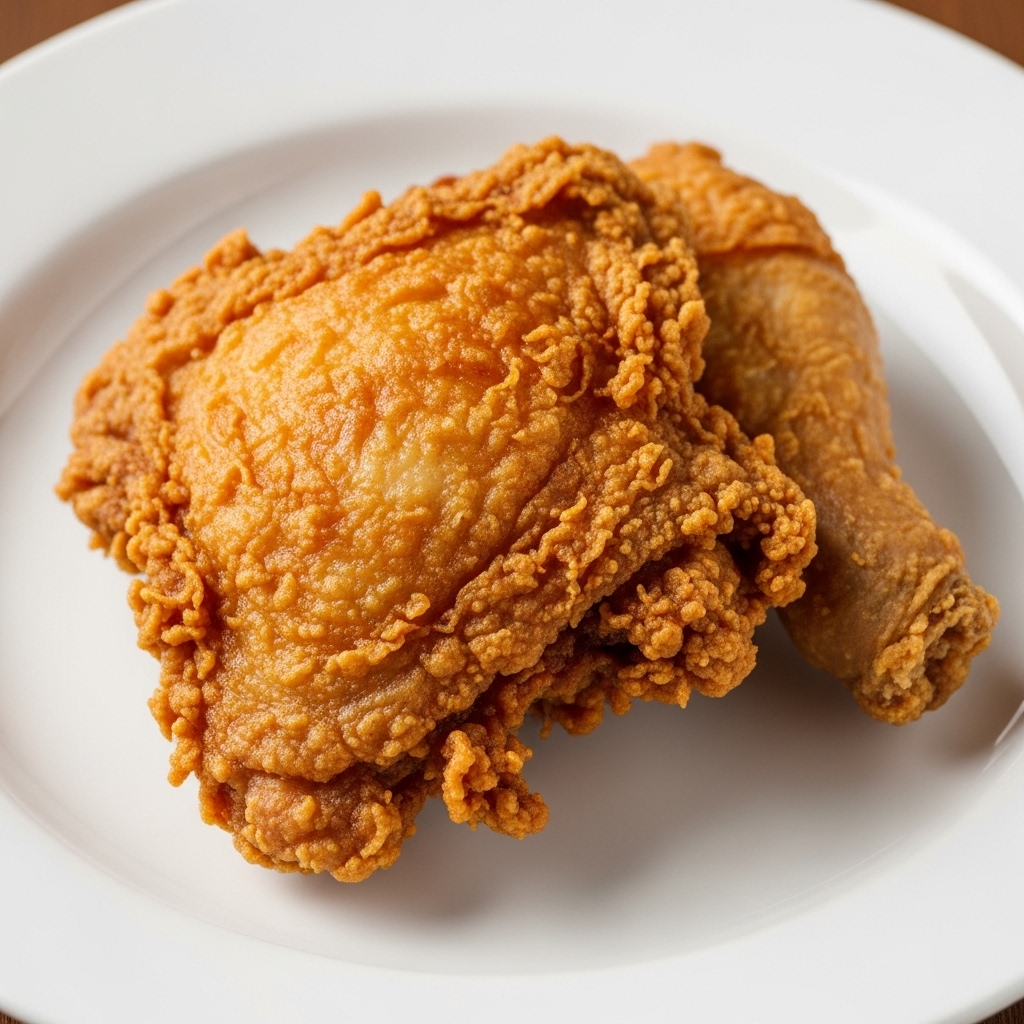 2 piezas de delicioso pollo frito: cadera y muslo.