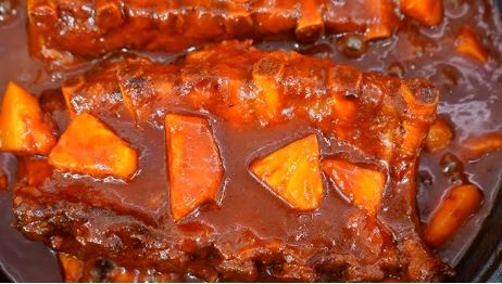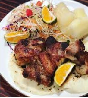 Deliciosa costilla en salsa de piña, arroz, ensalada del día y fresco natural del día.