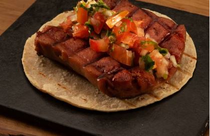 Delicioso Tacos con Papas Fritas y ensalada de repollo con salsas de la casa