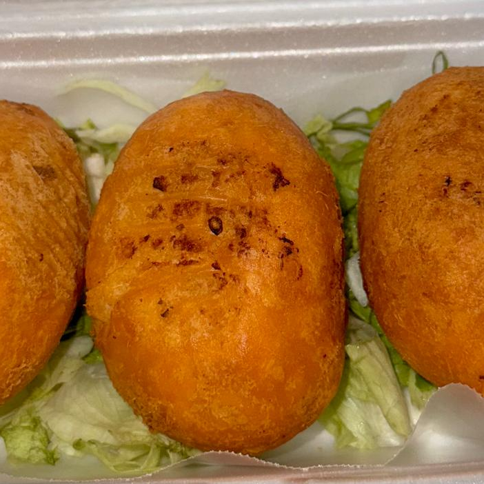 3 Enyucados rellenos de carne sobre una cama de lechuga y salsa a elegir.