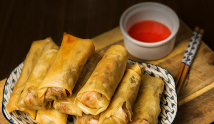 Exquisitos tacos chinos fritos de la casa.