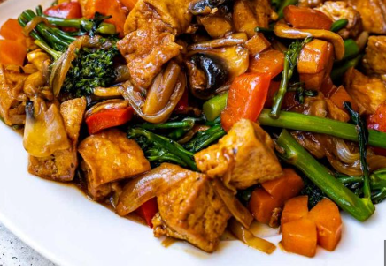 Delicioso entero chop suey especial en salsa.