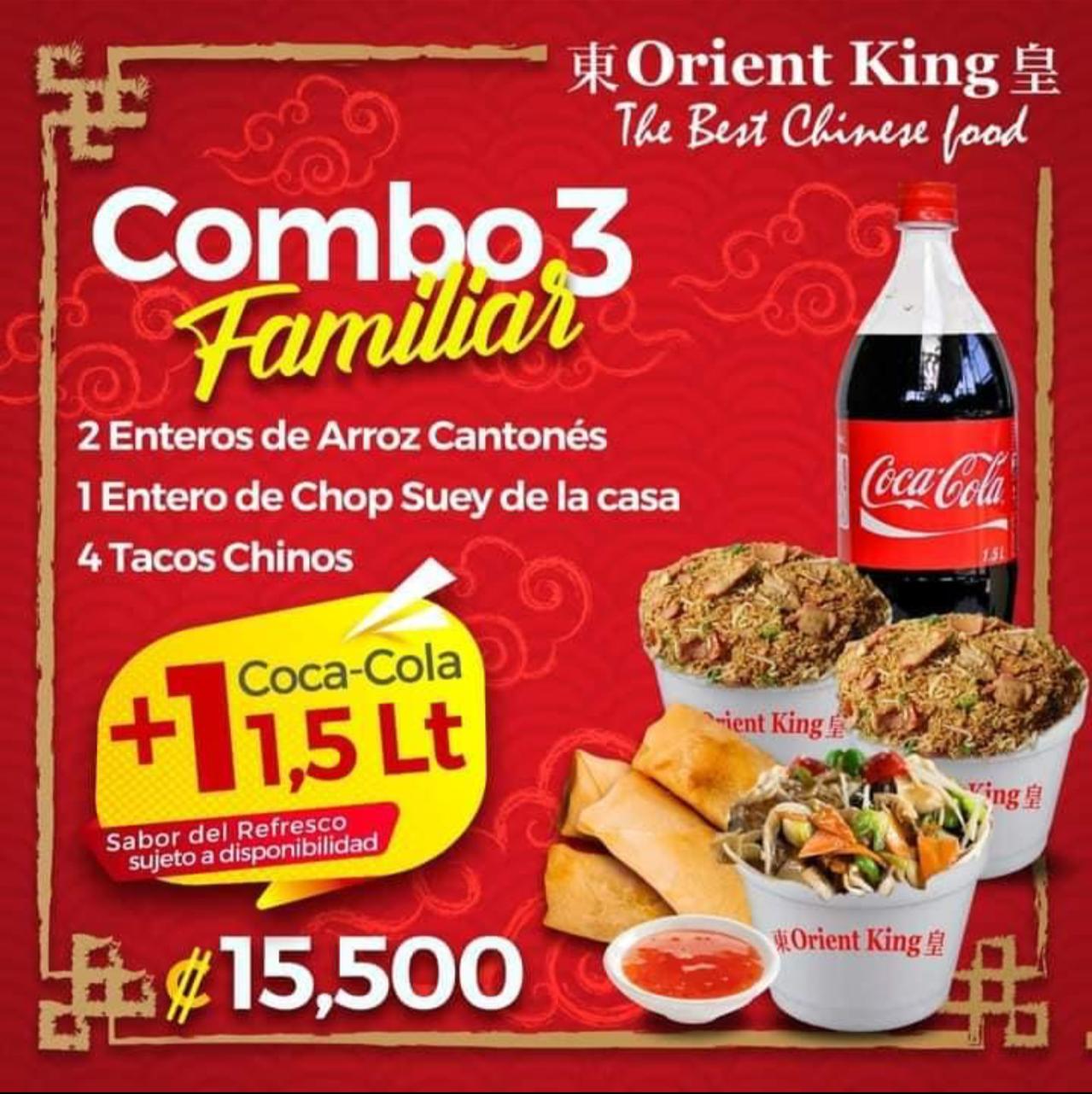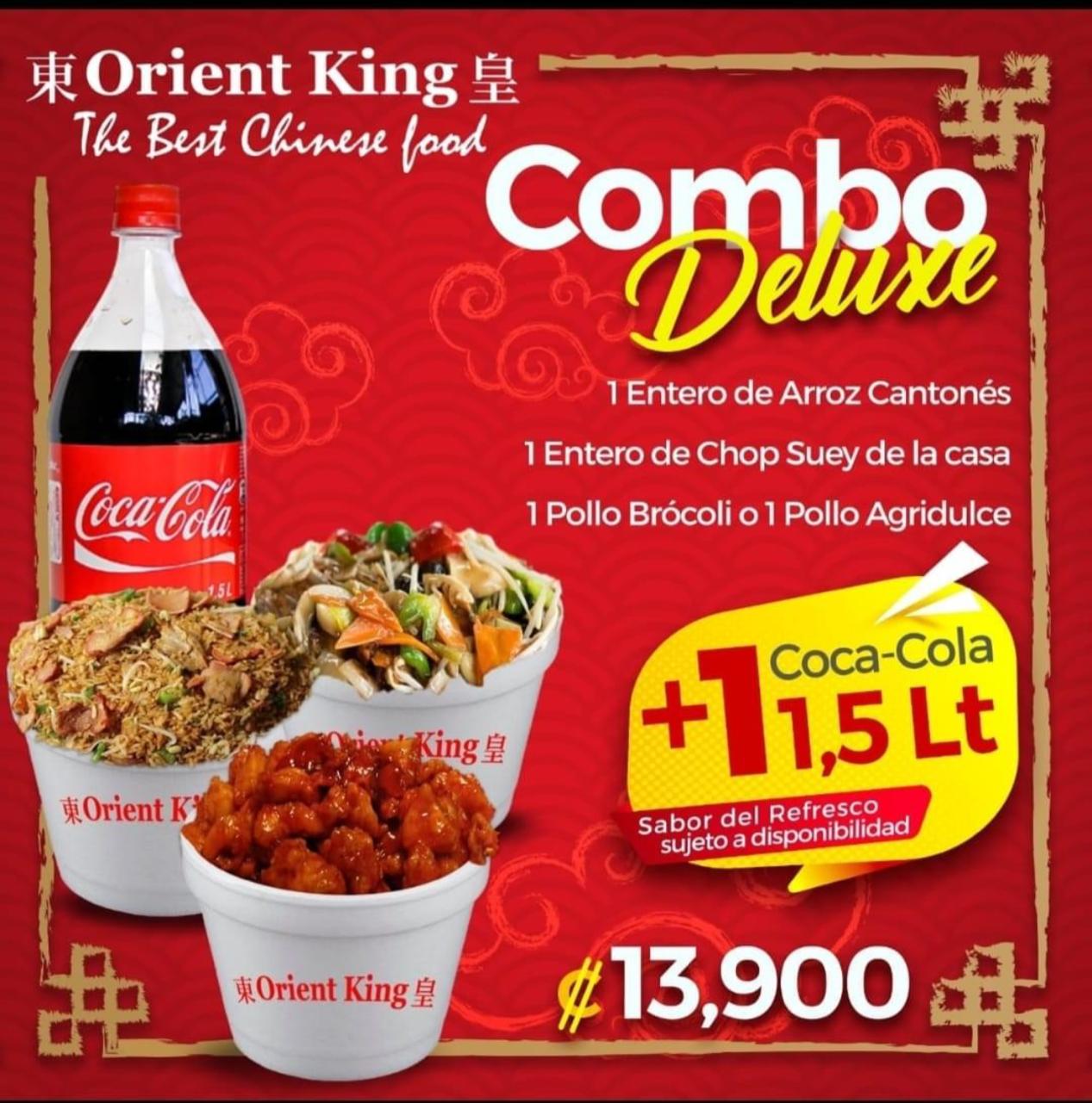 1 Entero Arroz Cantones + 1 Entero Chop Suey de la Casa + 1 Pollo Brócoli o Pollo Agridulce + 1 Refresco Grande (Sujeto a disposición entre Coca Cola o Pepsi)
