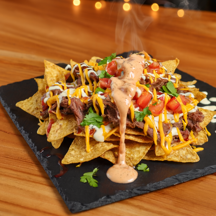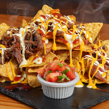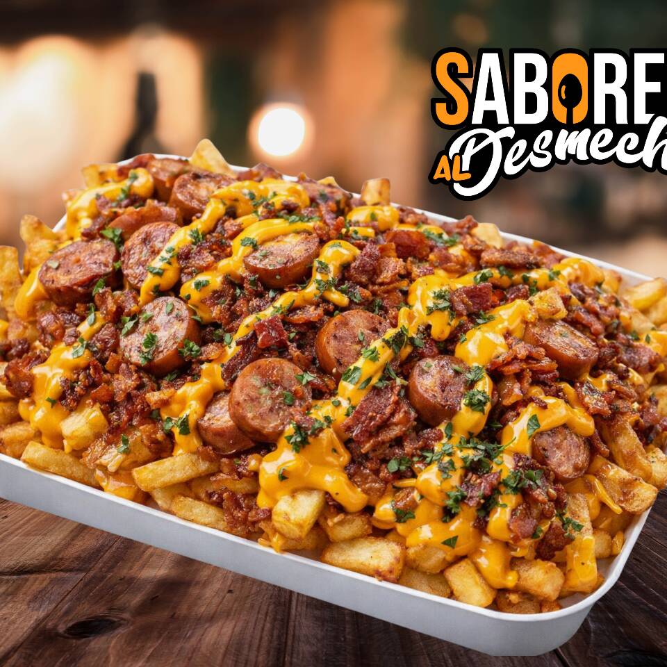 400g de papas fritas crujientes, cubiertas con frijoles molidos y tu proteína desmechada favorita (carne, pollo o mixta). Encima, salsa de tomate, mayonesa casera y queso cheddar fundido. Incluye 2 oz de pico de gallo servidas aparte para mantener la frescura.