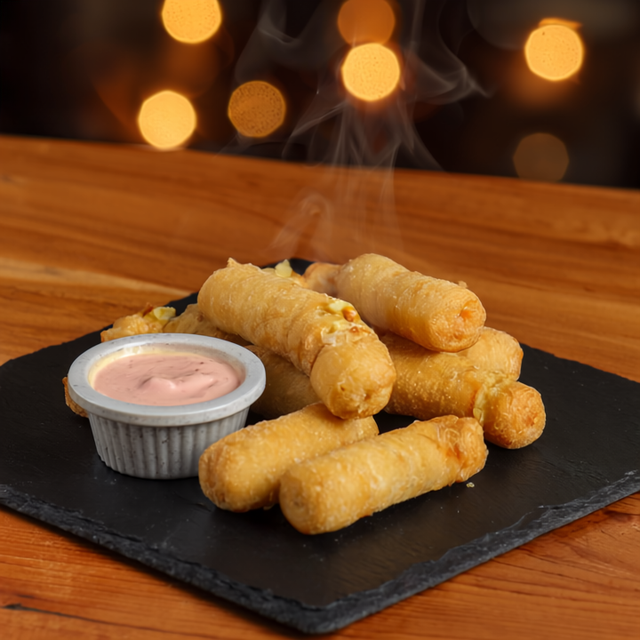 Crujientes por fuera, rellenos de queso por dentro. Acompañados con deliciosa salsa rosada. ¡Perfectos para picar!