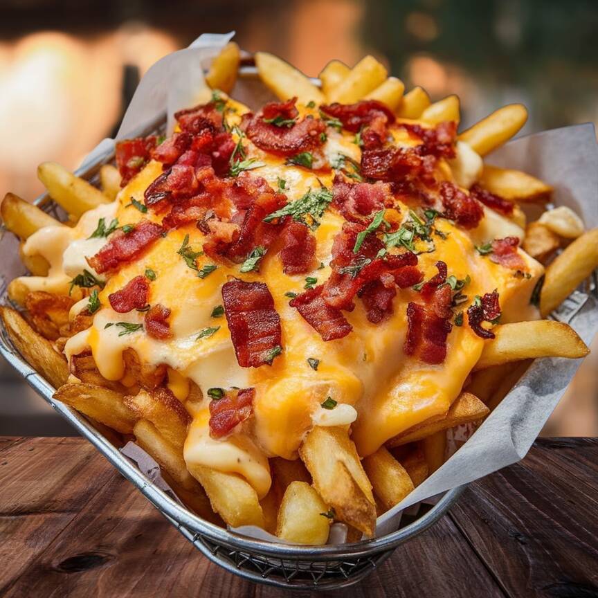400 gramos de papas fritas bien doradas, cubiertas con queso cheddar derretido y bacon tostadito. Un clásico irresistible, servido en tamaño XL y listo para disfrutar al máximo.