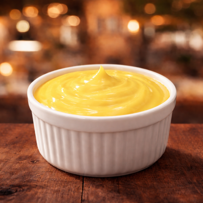 Porción de 2oz de mayonesa casera, elaborada con ingredientes frescos. Aporta un sabor suave y delicioso.
