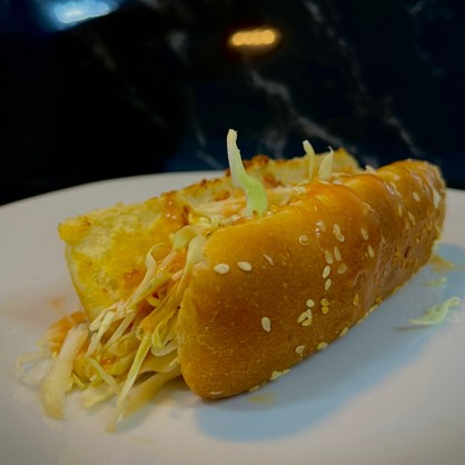 Hot dog con repollo y salsas