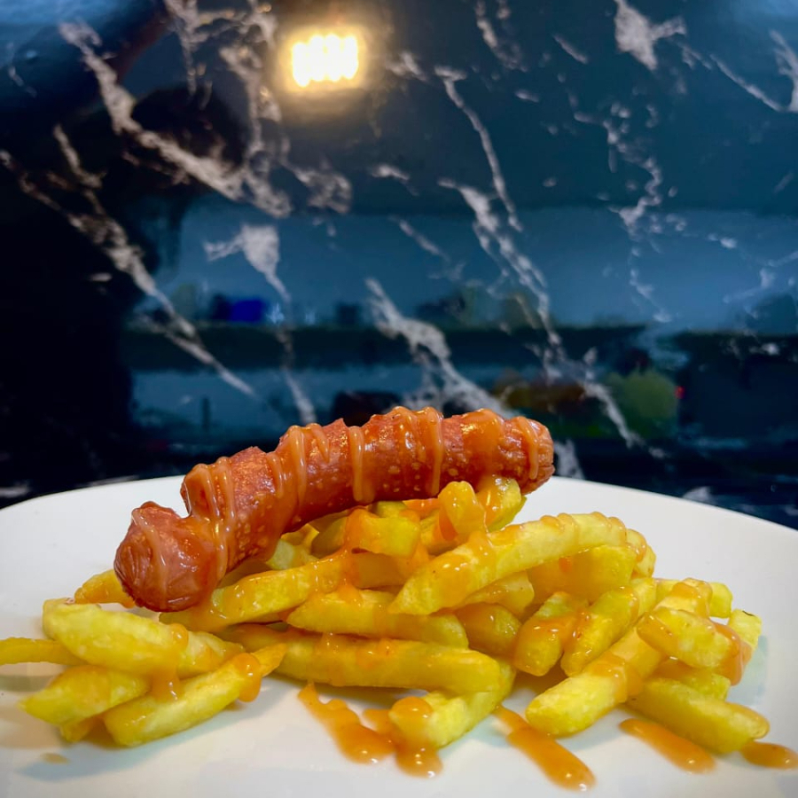 1 Salchicha, Acompañada de 150 grs de papas