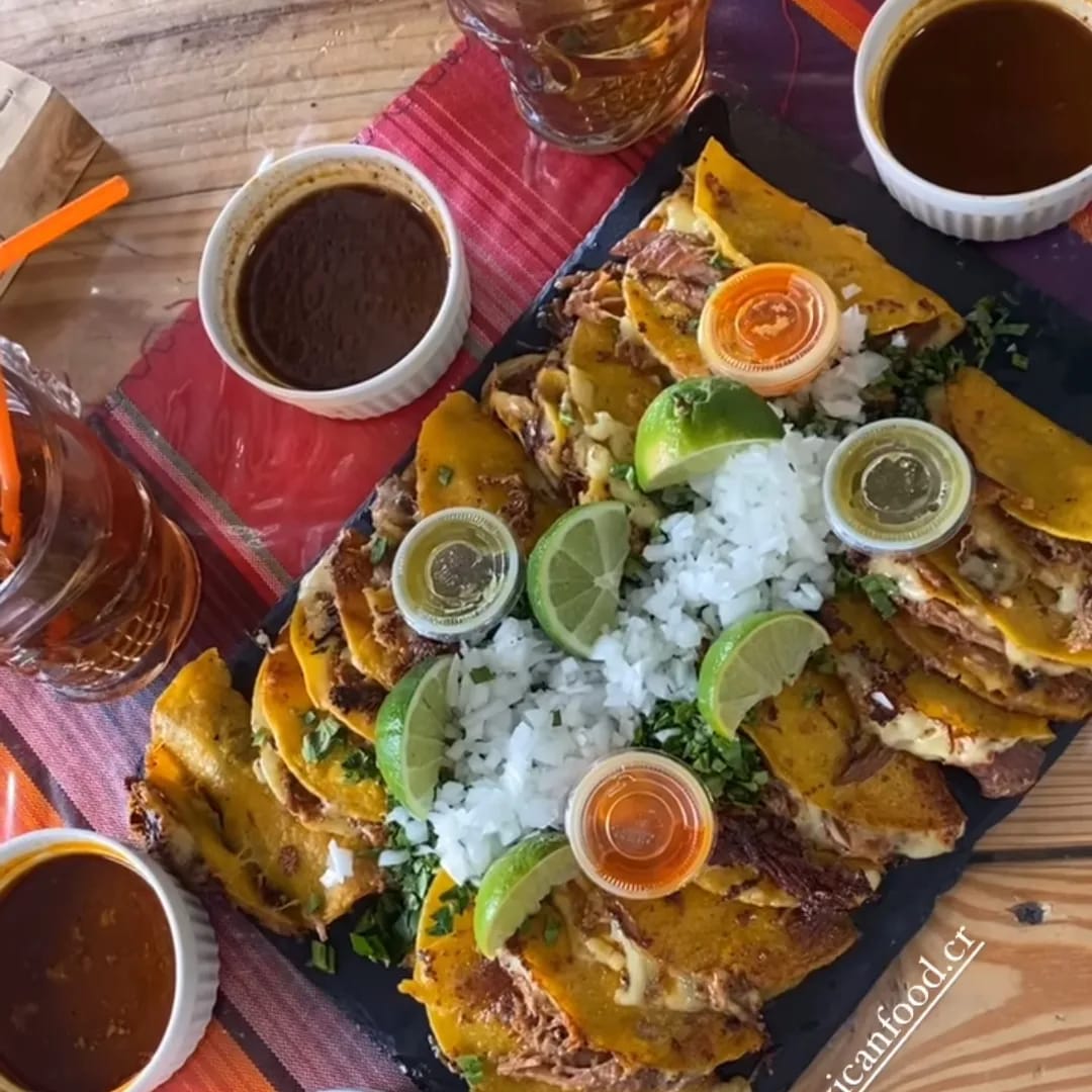 10 tacos rellenos con queso mozzarella derretido y birria de res desmenuzada, cocida a fuego lento con una selección de especias y hierbas, acompañada de nuestro consomé casero