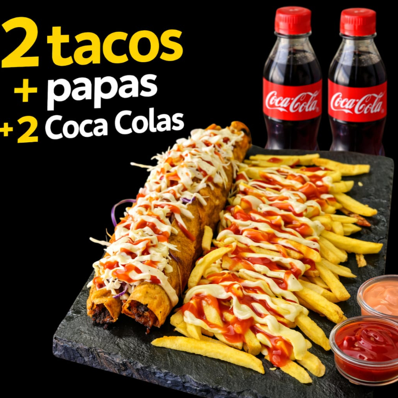 Combo Mixto 2 Tacos + Papas + 2 COCA COLA 250ML