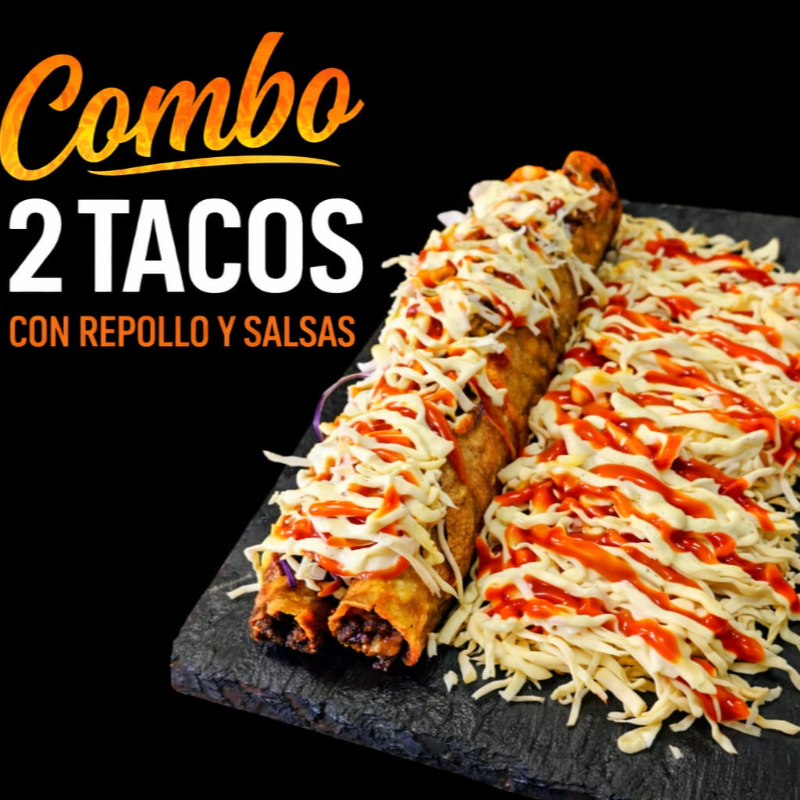 Combo de 2 tacos a elegir entre pollo y carne acompañado de repollo y salsas