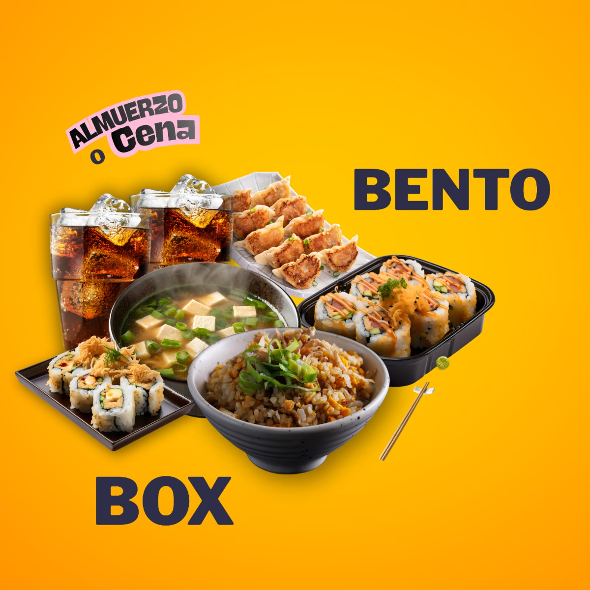 50 Piezas Sushi + 4 Té Fríos + 4 Gyozas + 2 Salsas