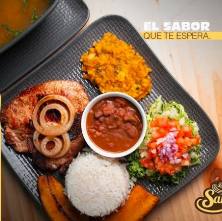 Acompañados de arroz, frijoles, plátano madrero, pico de gallo, ensalada, incluye consomé y te frio.
