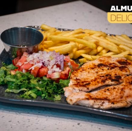 Filete de pollo a la plancha con ensalada fresca y acompañante a tu elección.