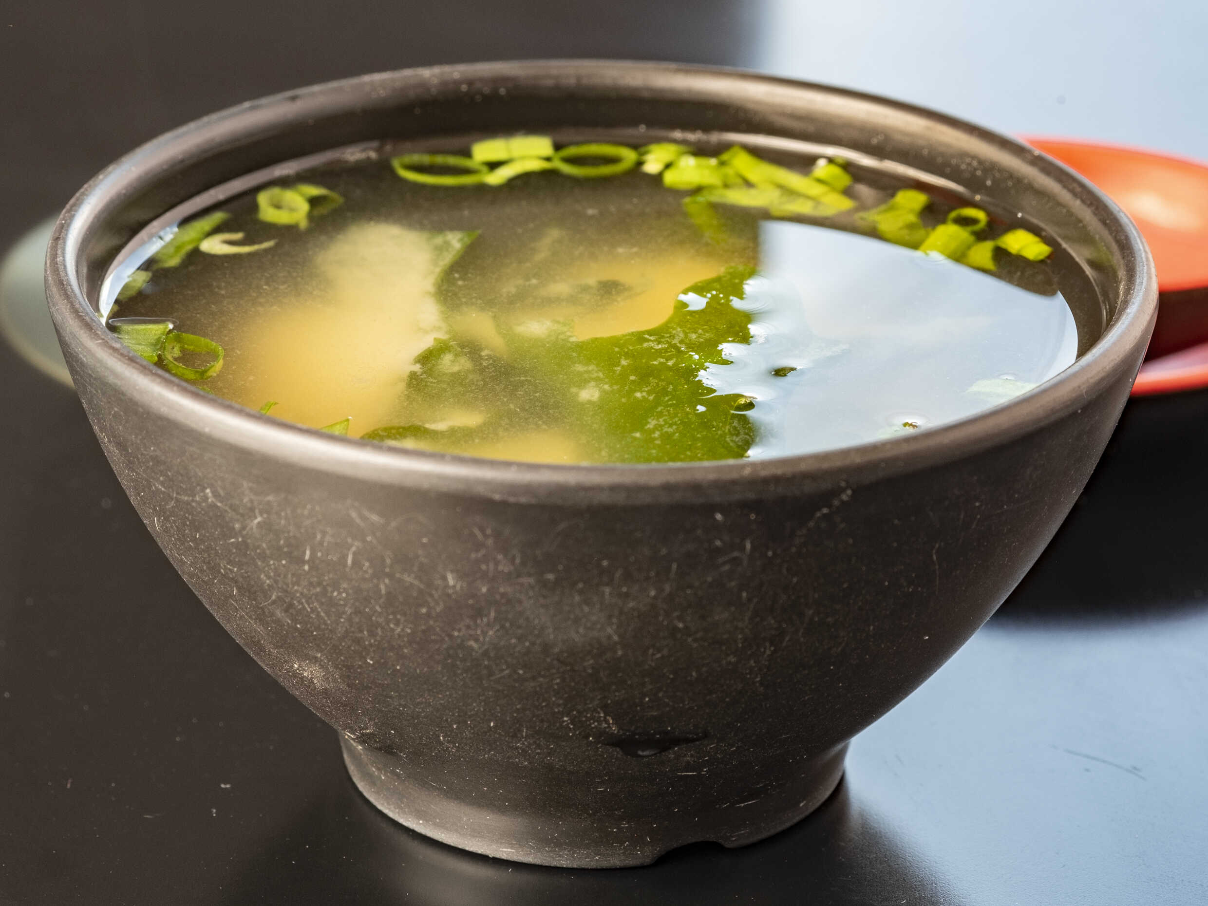 Sopa de soya con wakame, tofu y cebollino (pequeña)
