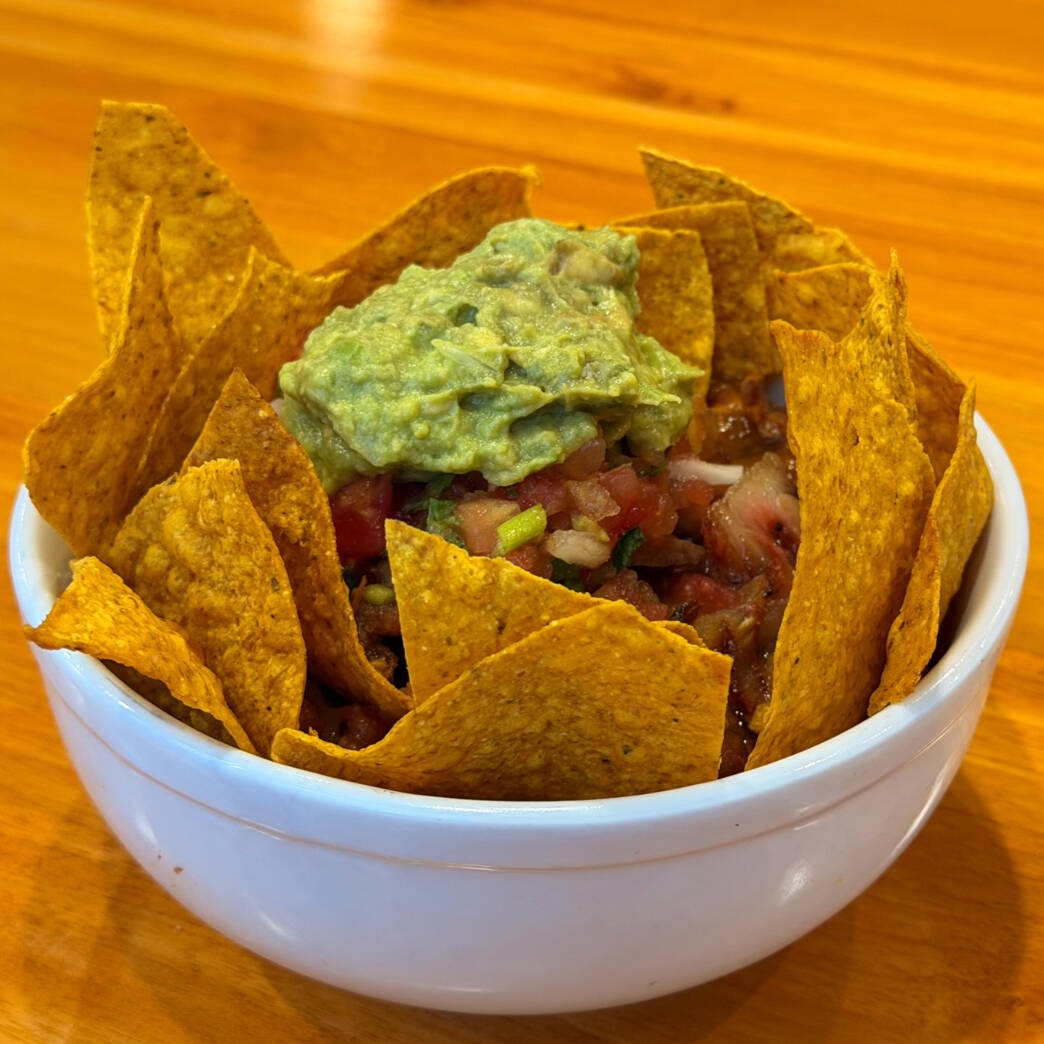 Nuestra deliciosa versión del tradicional platillo, incluye arroz, frijoles tiernos, pico de gallo, guacamole, tortillitas chip y chicharrones recién hechos y BEBIDA DE LA CASA GRATIS