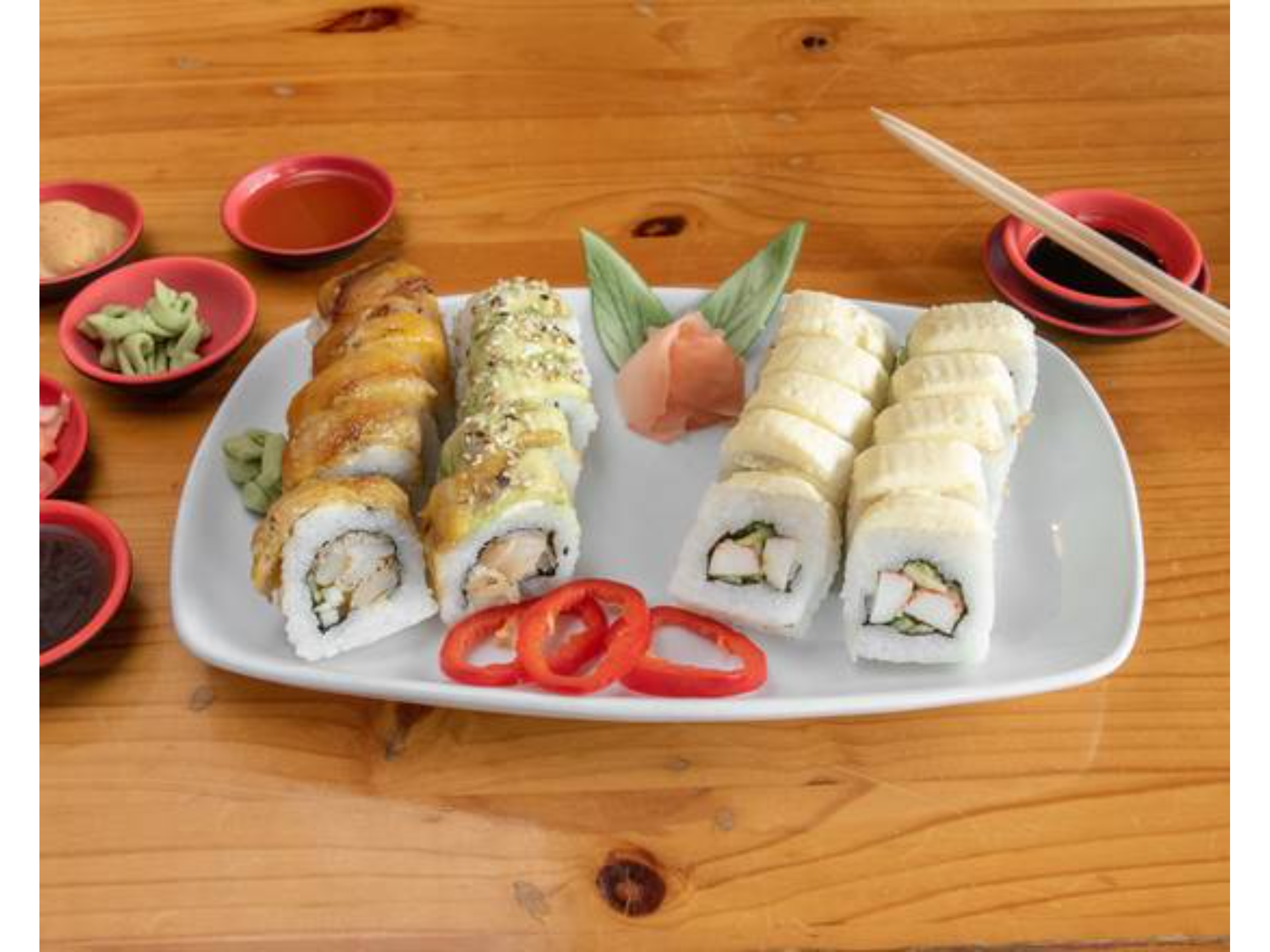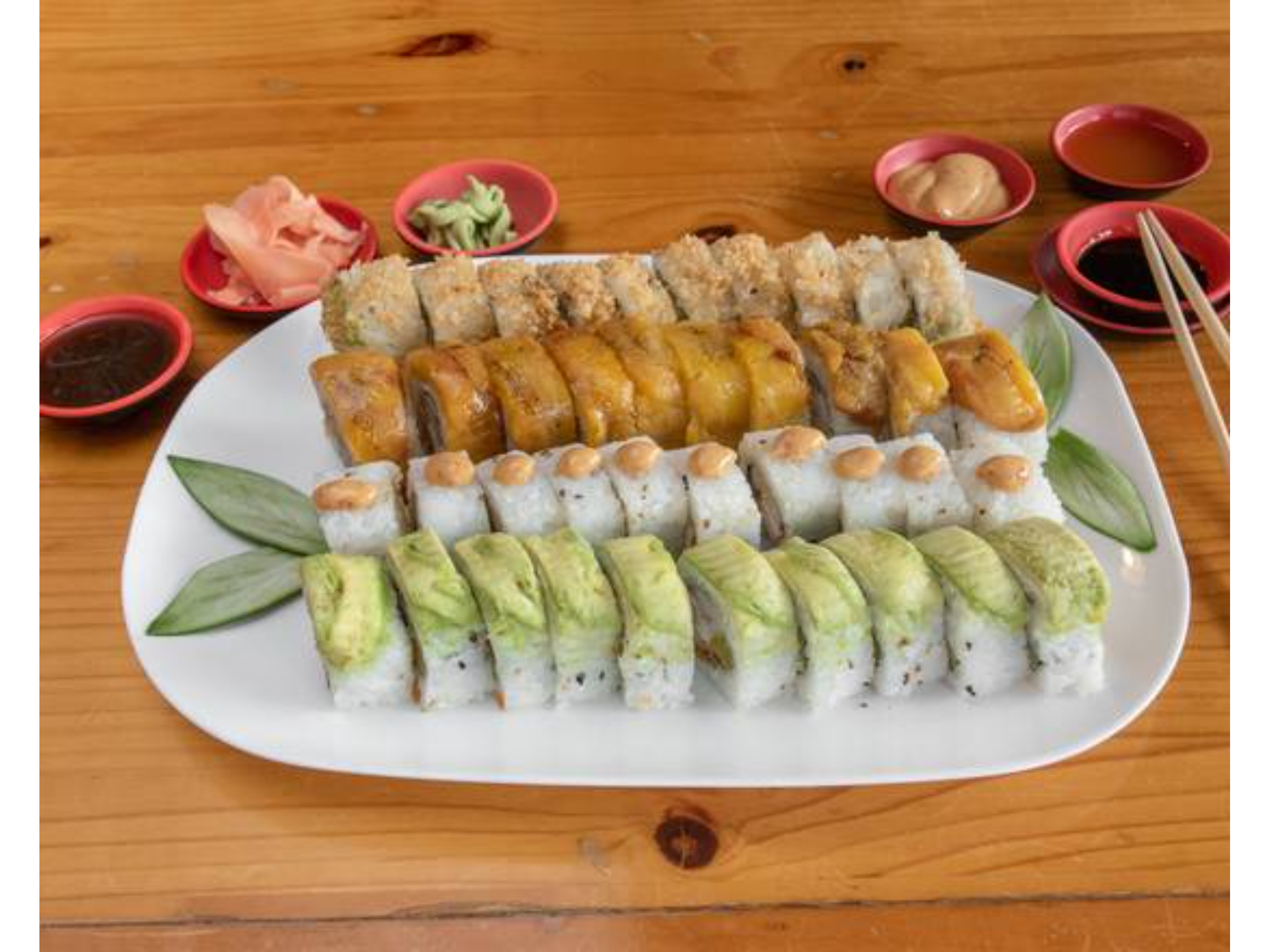 Sushi a elección con 40 piezas. Incluye palillos y salsas.