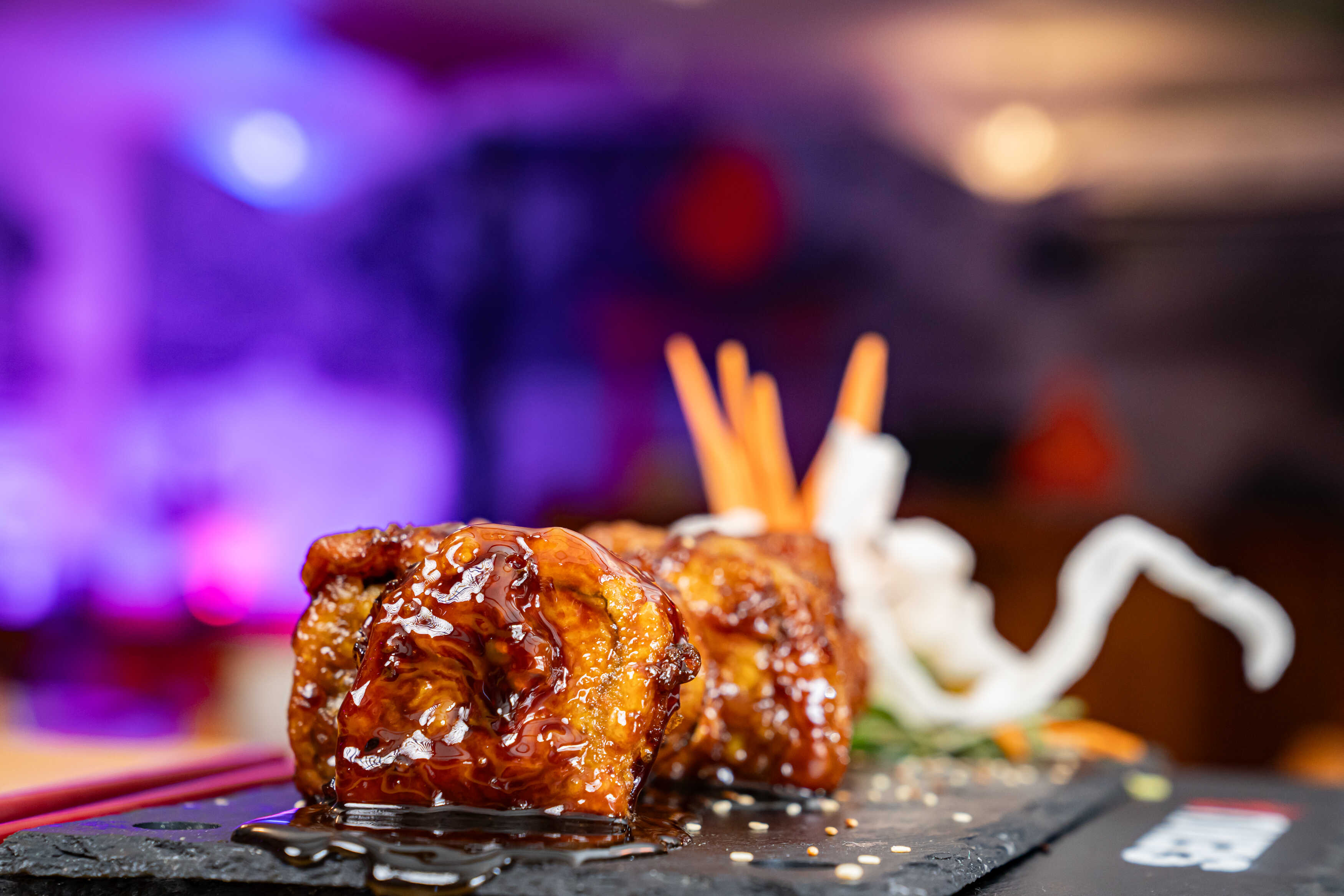 60 Piezas de sushi, 6 sopa miso, 6 gyozas de pollo, 1 Coca Cola 1.5 L. Salsa de anguila, salsa de anguila spicy, salsa orange (opcional), salsa soya, wasabi, jengibre y palillos.