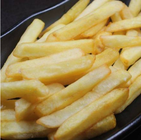 Papas fritas, hummus, carne de res, pollo y pan árabe.