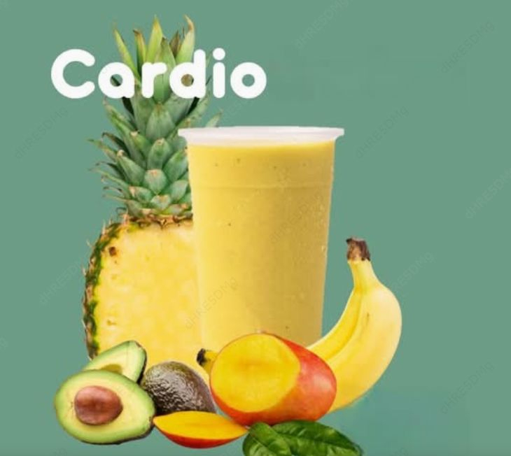 Aguacate, mango, banano y piña, base líquida de agua o naranja.