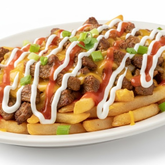 Papas con ingredientes adicionales (tipo loaded fries).