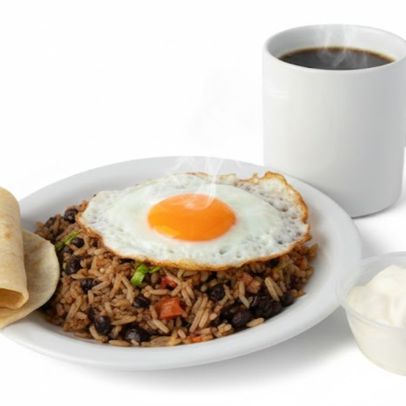 Pinto con Huevo y Pollo Frito