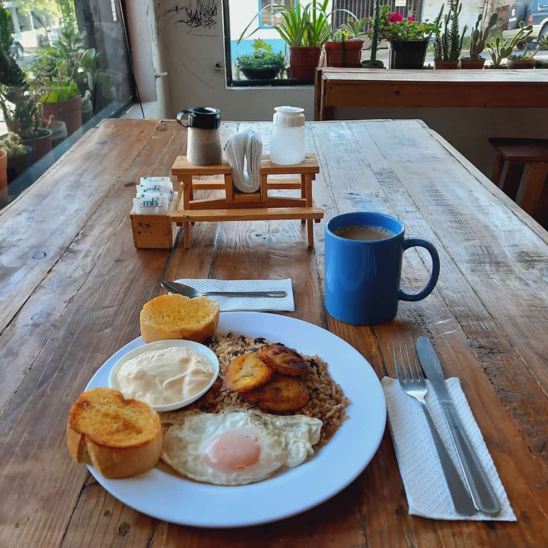 Pinto, 1 Huevo, maduros, natilla, pan con café o jugo de naranja
