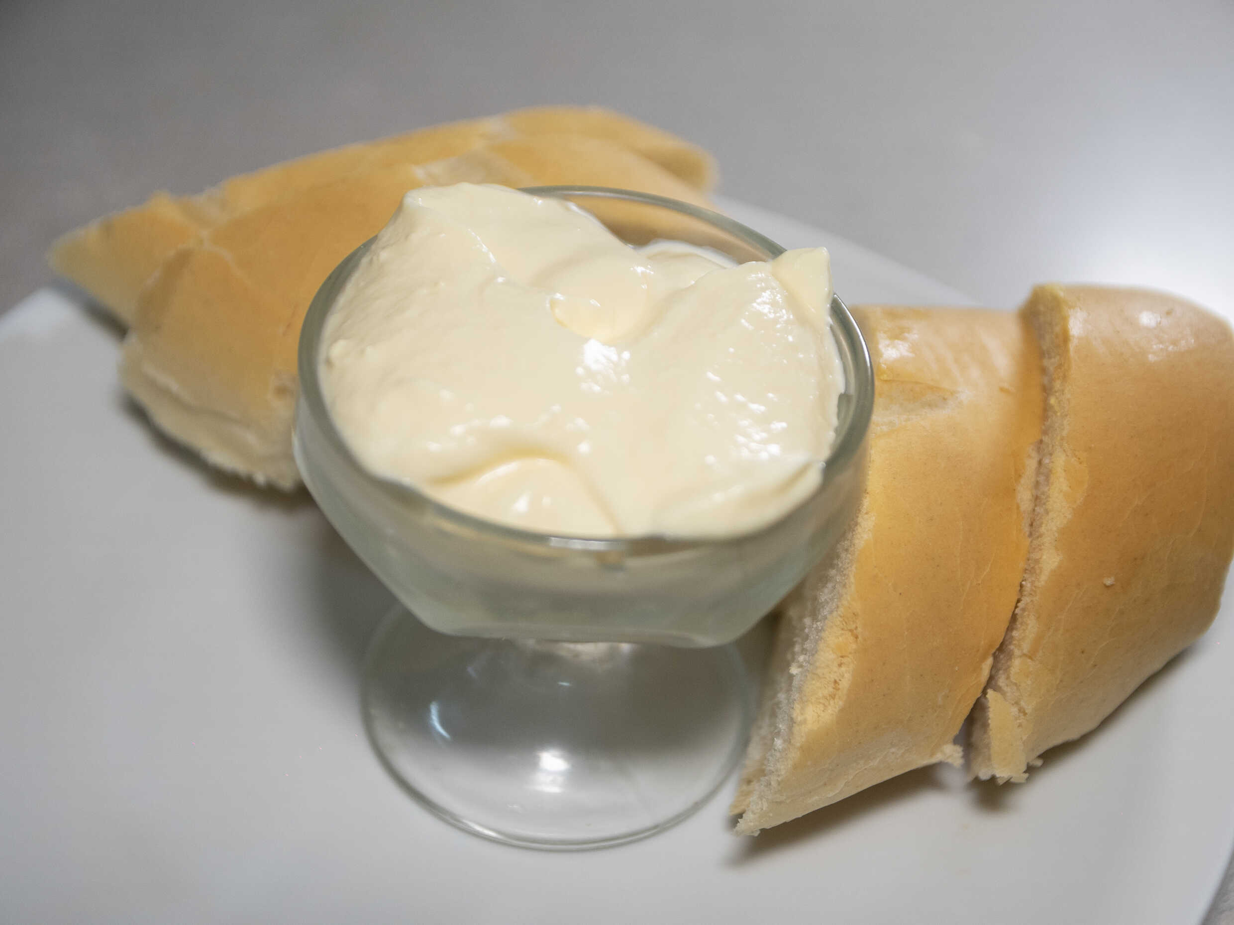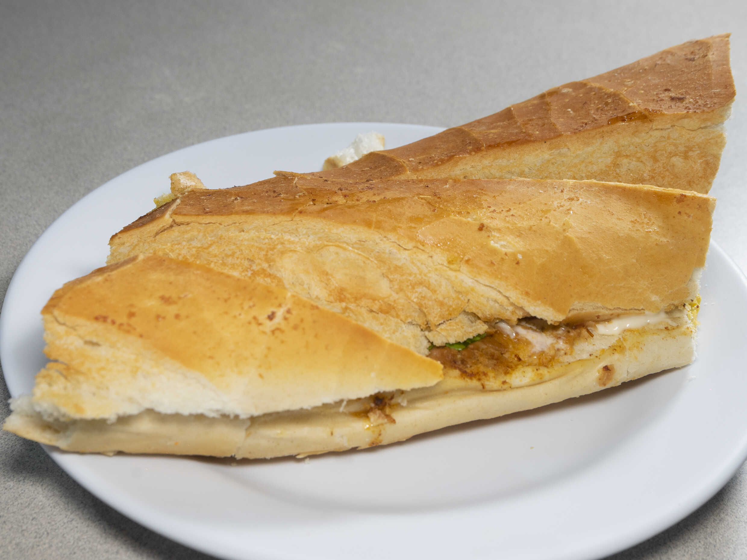 Pan baguette, lechuga, tomate, salsa de tomate, mayonesa y mostaza.