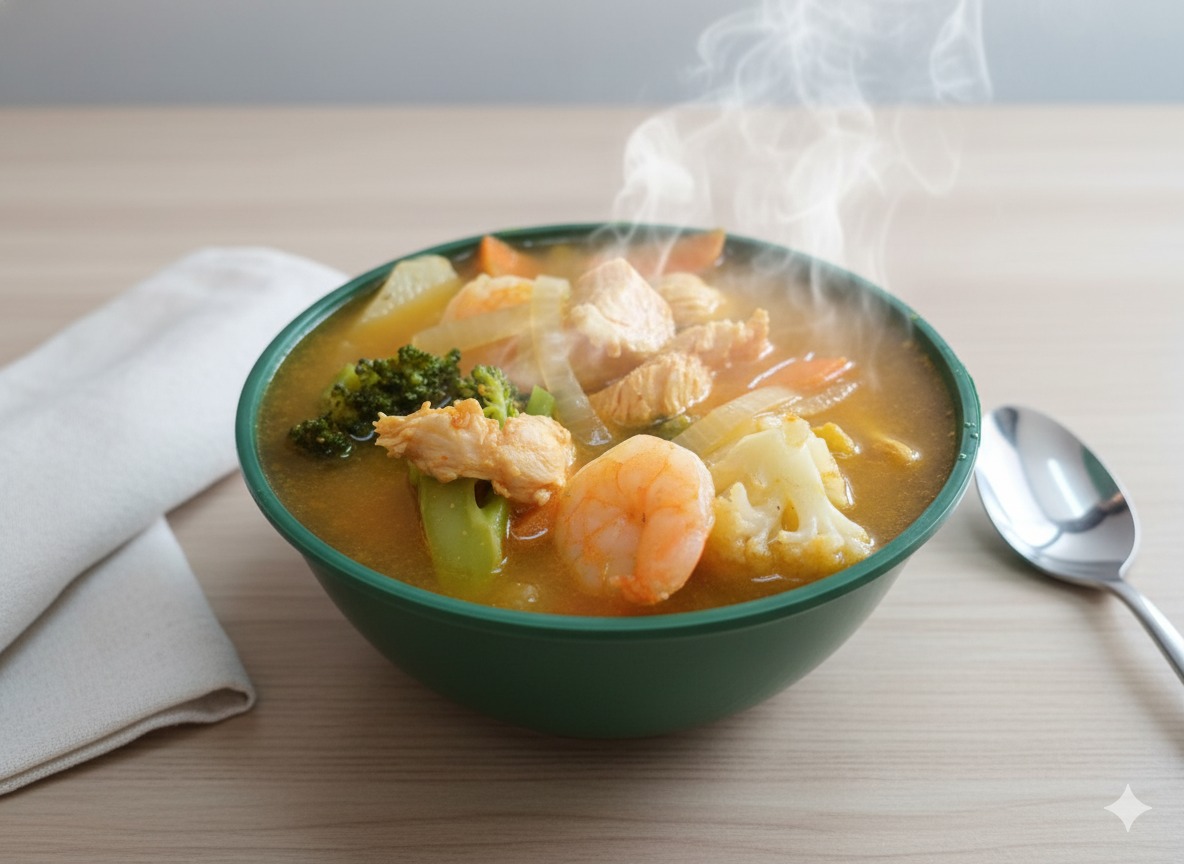 Deliciosa sopa de la casa, papa, proteína a escoger, verduras.