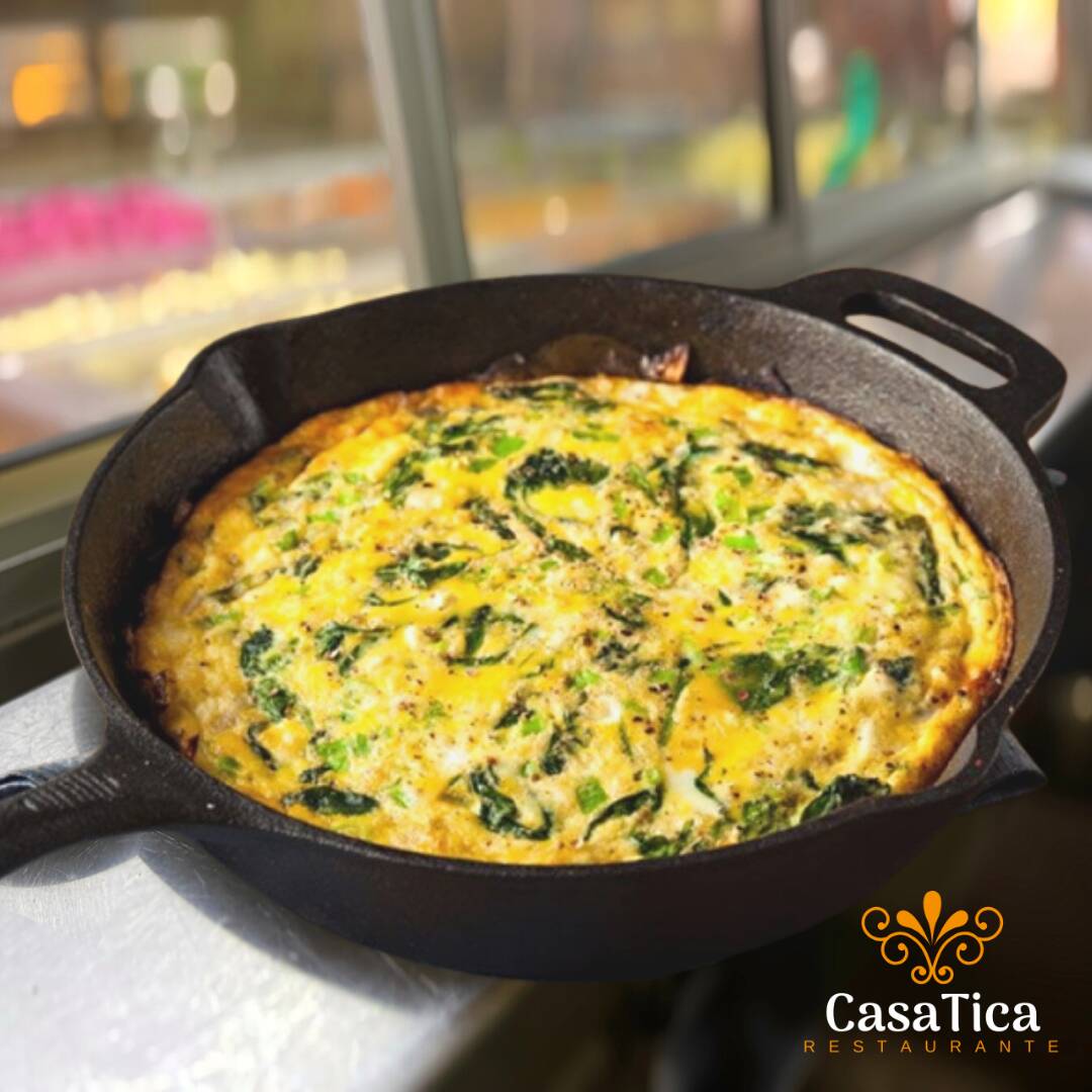 Torta de huevo acompañada de dos tortillas.
