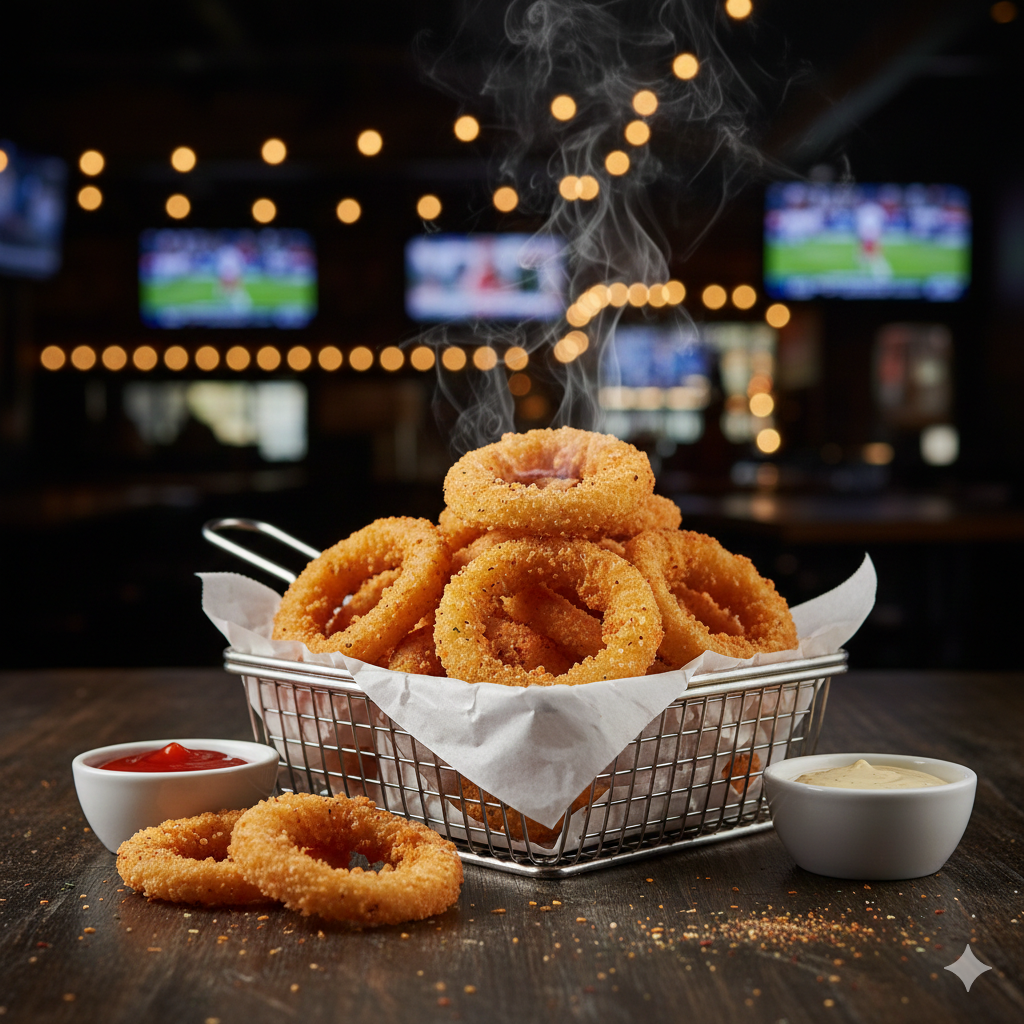 Aros de cebolla fritos.