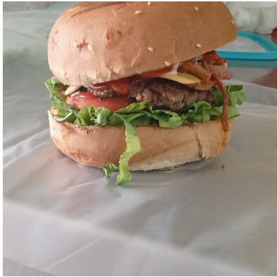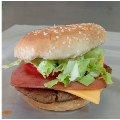Hamburguesa con pan, torta de carne, tomate, lechuga, jamón, queso y nuestras deliciosas salsas de la casa.