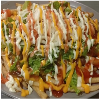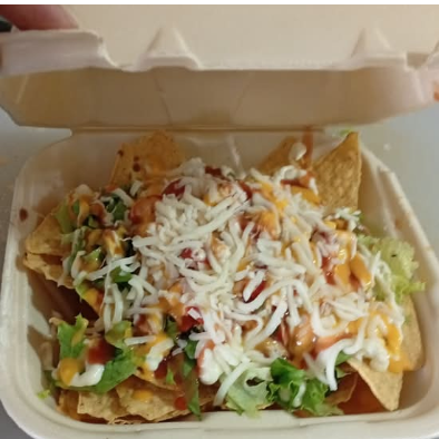Tortillas de nachos acompañado por frijoles molidos, carne mechada, queso cheddar y mozzarella, lechuga, tomate y nuestras deliciosas salsas de la casa.