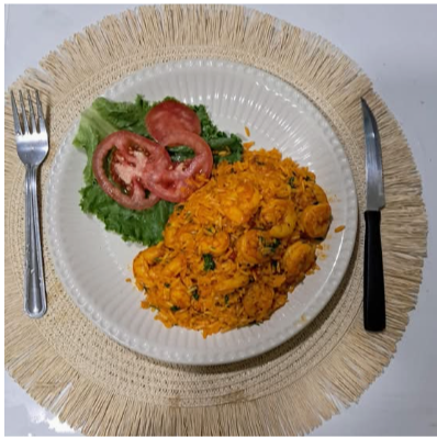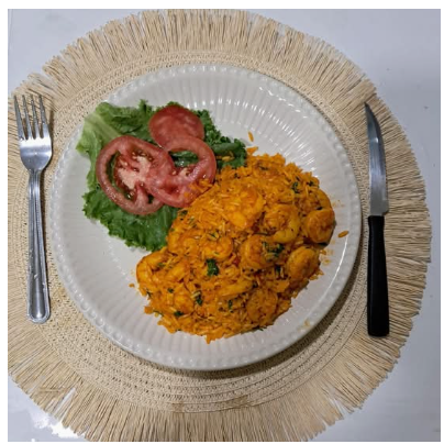 Porción de entero de arroz con camarones, y sus respectivos olores. 🦐