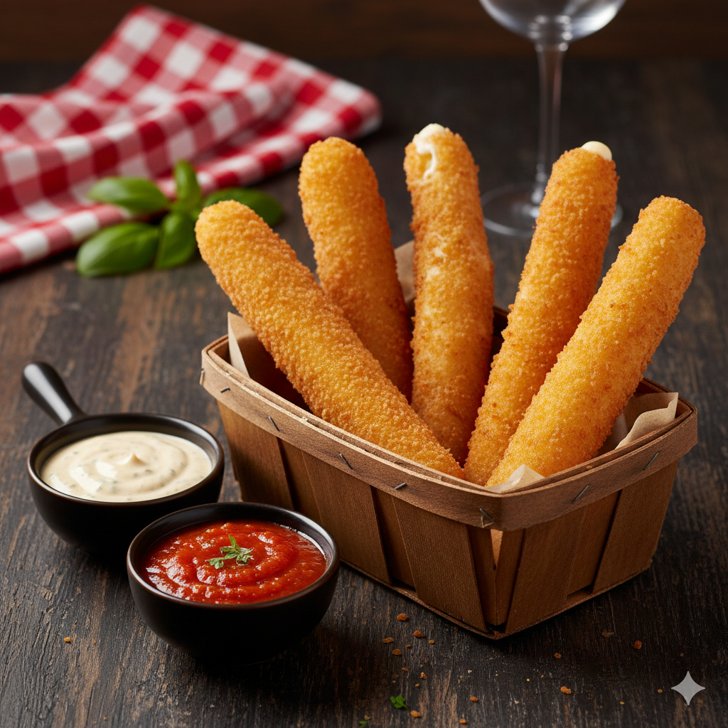 Palitos de queso de 15 cm con salsa de la casa 5 unidades.