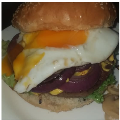Hamburguesa con torta de carne, lechuga, tomate, jamón, queso, huevo frito y nuestras deliciosas salsas de la casa.