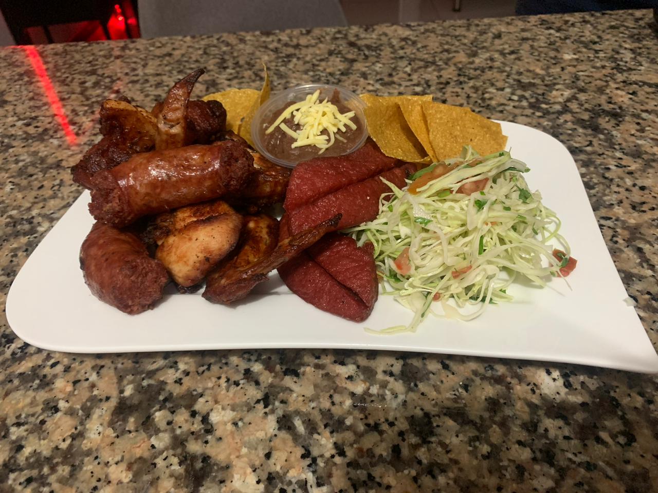 Con chicharrón, pollo, salchichón, ensalada criolla y 1 refresco natural.