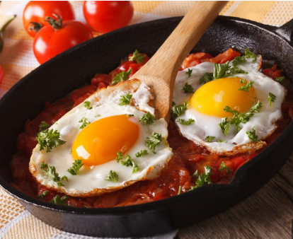 Delicioso 2 huevos rancheros, acompañados de queso más pan artesanal.