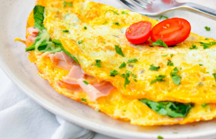 Delicioso omelette con jamón y queso.