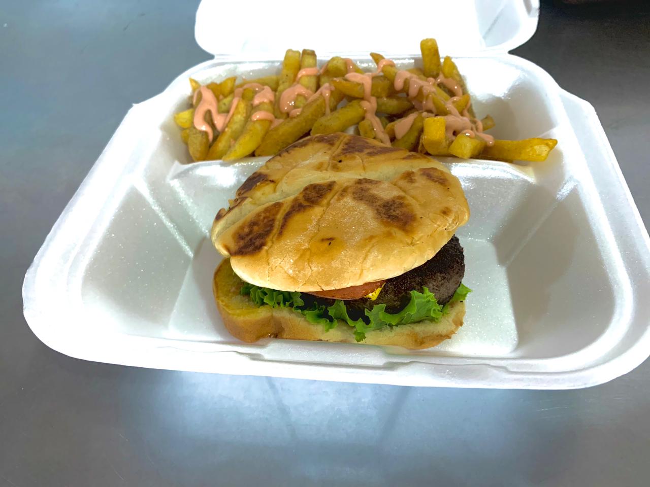Hamburguesa 1/4libra con Papas fritas